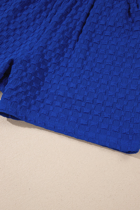 Sky Blue Jacquard Textured Buttoned Tee and Shorts Set. GCollection